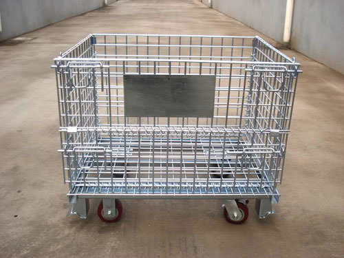 浙江仓储笼底部加2定2定带刹车脚轮,一般1000Mm以下尺寸加4寸脚轮,1000Mm以上加5寸脚轮,脚轮分尼龙脚轮与聚氨酯脚轮2种,还有橡胶脚轮。